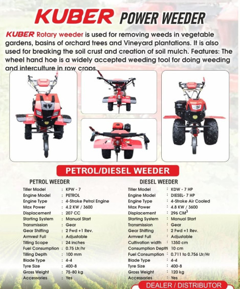 Kuber 7 HP Diesel and Petrol Power Hand Weeder